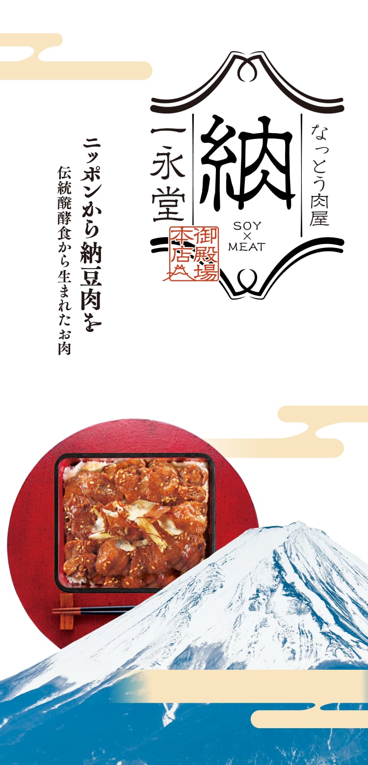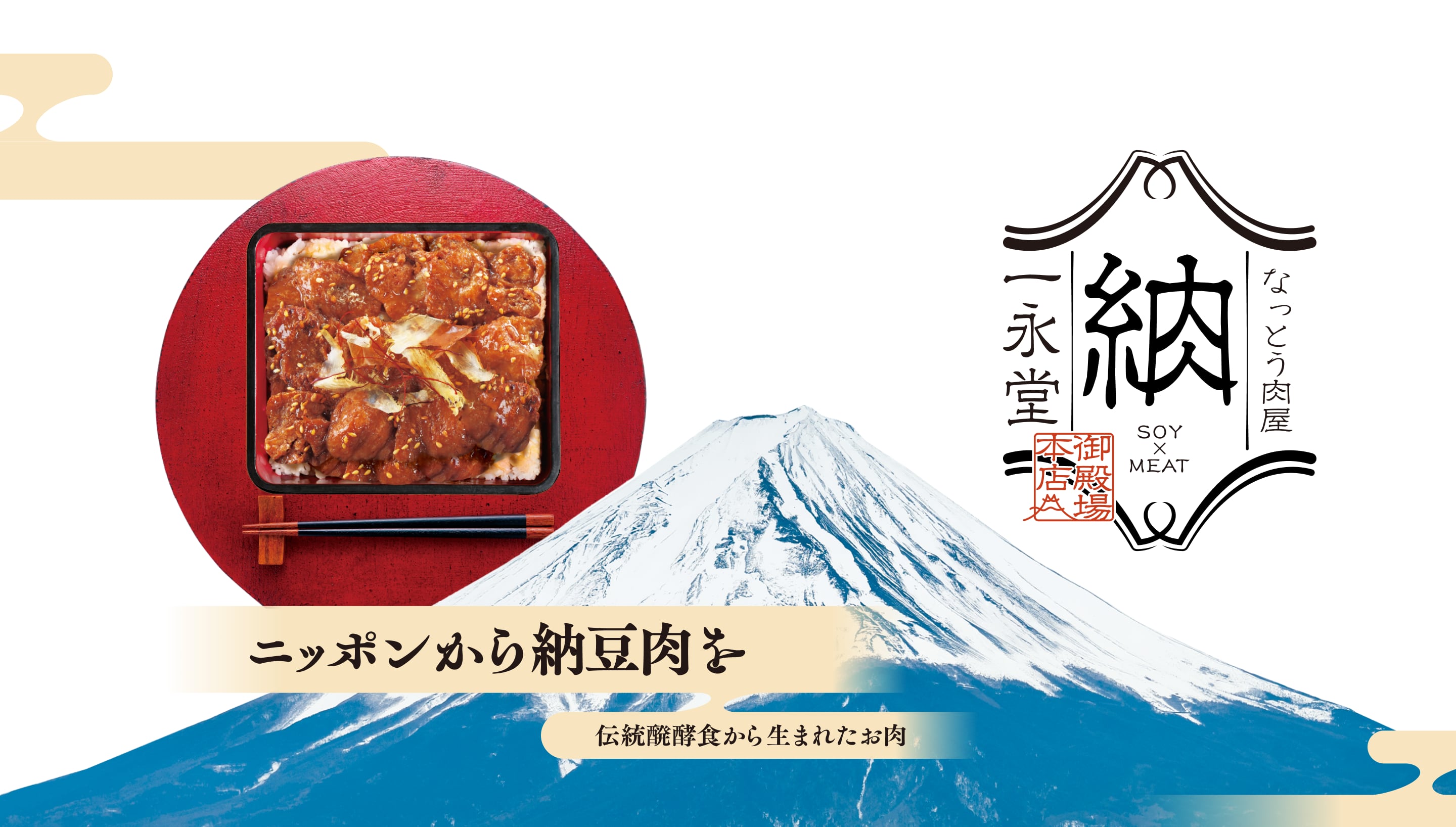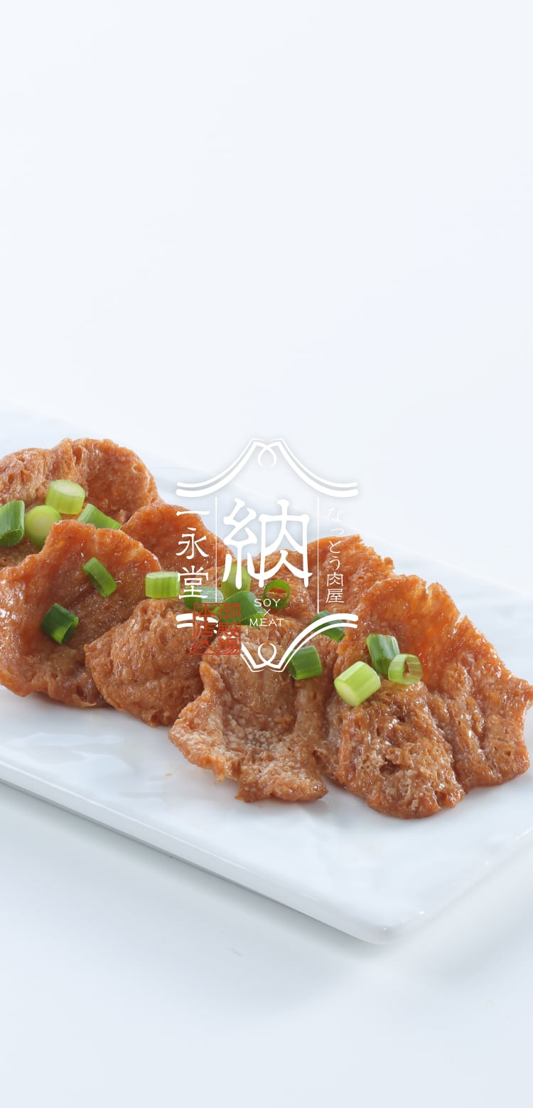 日本の伝統の納豆菌と植物性由来の大豆から作った 次世代のお肉「なっと肉」。 日本の伝統食材「納豆」を作る「納豆菌」で 大豆タンパクを発酵させてできた、 植物性たん白たっぷりのお肉です。 この特別な味を、体験してください。